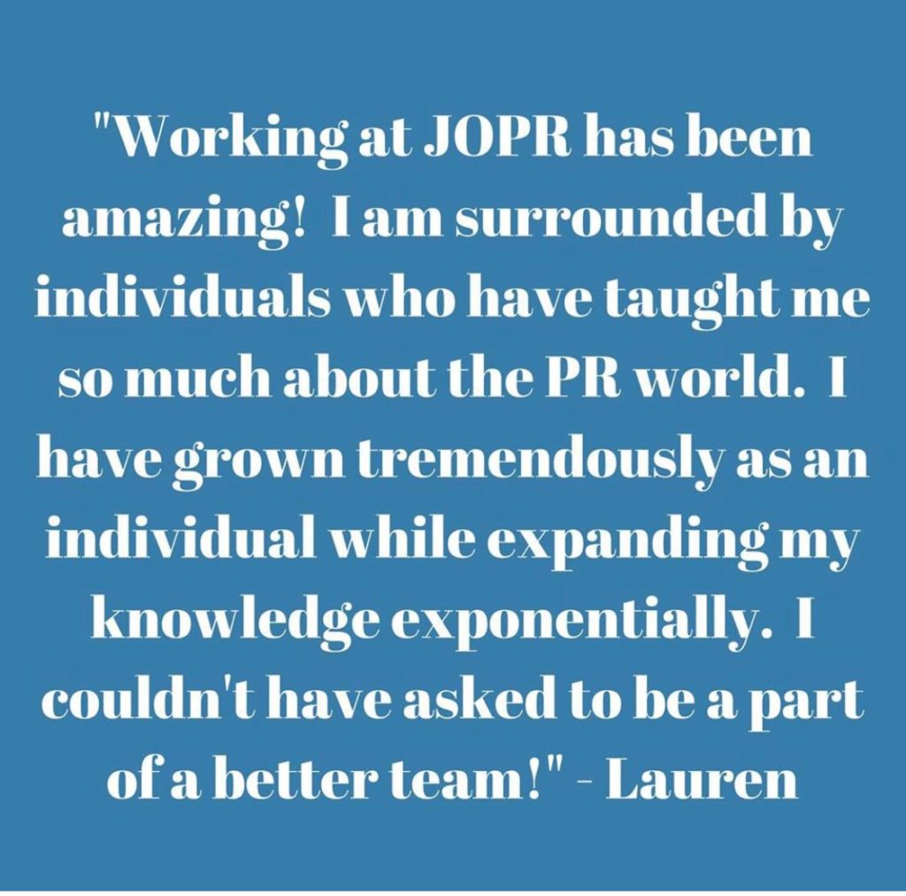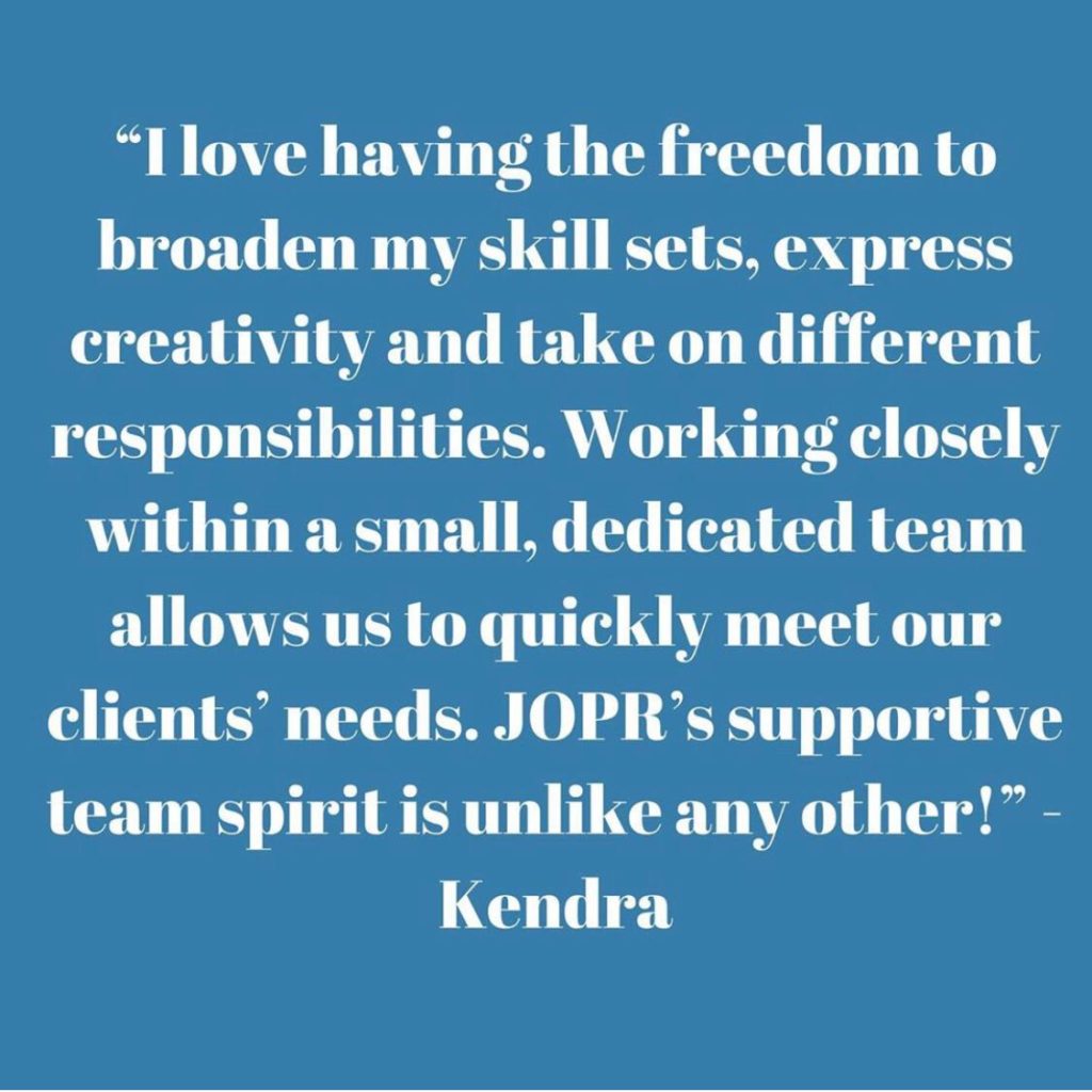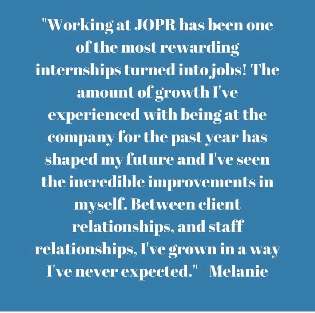 JOPR is an equal opportunity workplace with an open door of opportunities. Please contact us if you are interested in hearing about our internships or full time opportunities.